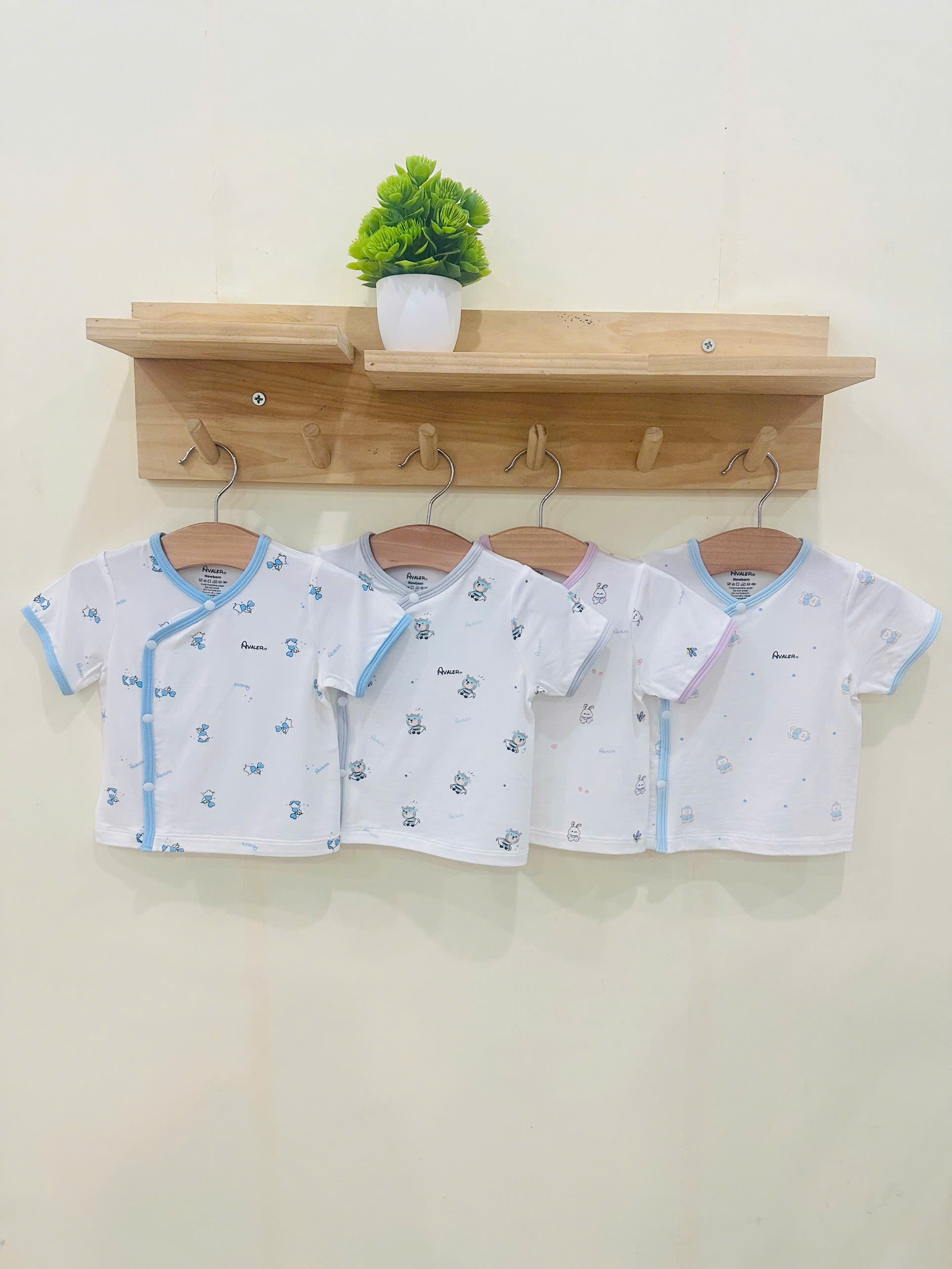 Thiết kế cúc bấm nhựa, chống gỉ sét, form bé mặc đẹp, màu sắc nhã nhặn, sang trọng