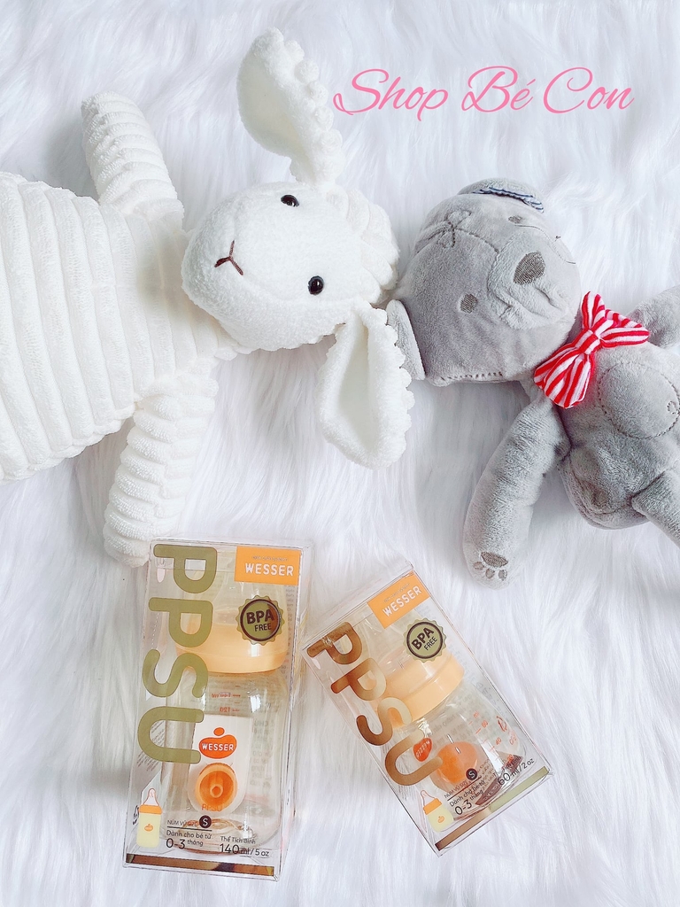 - Bình sữa Wesser PPSU cổ thường 250ml sử dụng chất liệu nhựa PPSU chịu được nhiệt độ cao đến 180 độ C giúp mẹ yên tâm khi tiệt trùng bình hoặc vệ sinh bình bằng nước nóng.