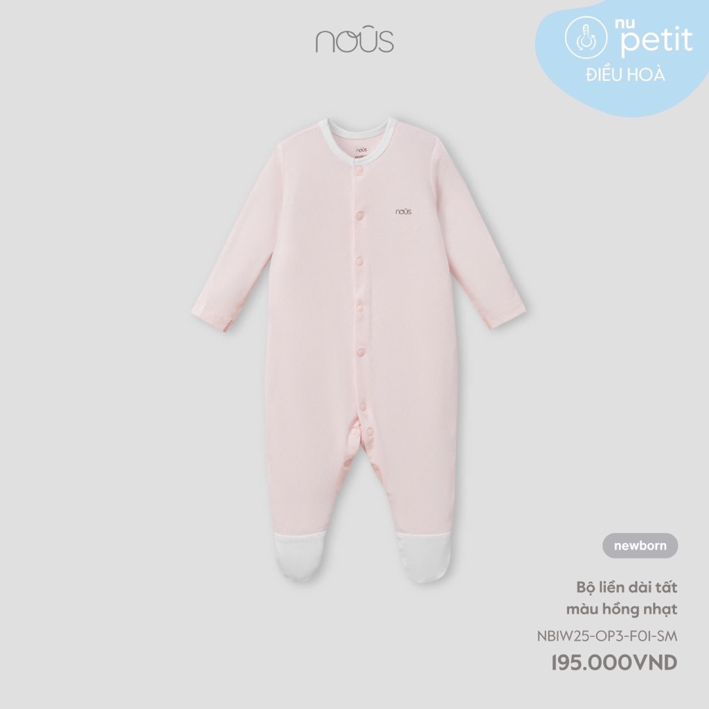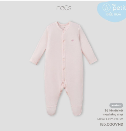 Bộ liền dài tất màu hồng nhạt NB
