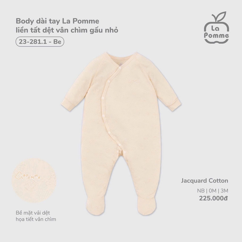 Body dài tay La Pomme liền tất dệt vân chìm gấu nhỏ