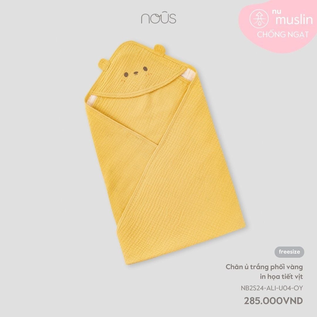 Chăn ủ trắng phối vàng in hoạ tiết vịt