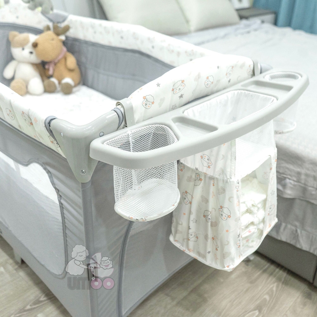 - Có thể hạ thành để nối liền với giường bố mẹ