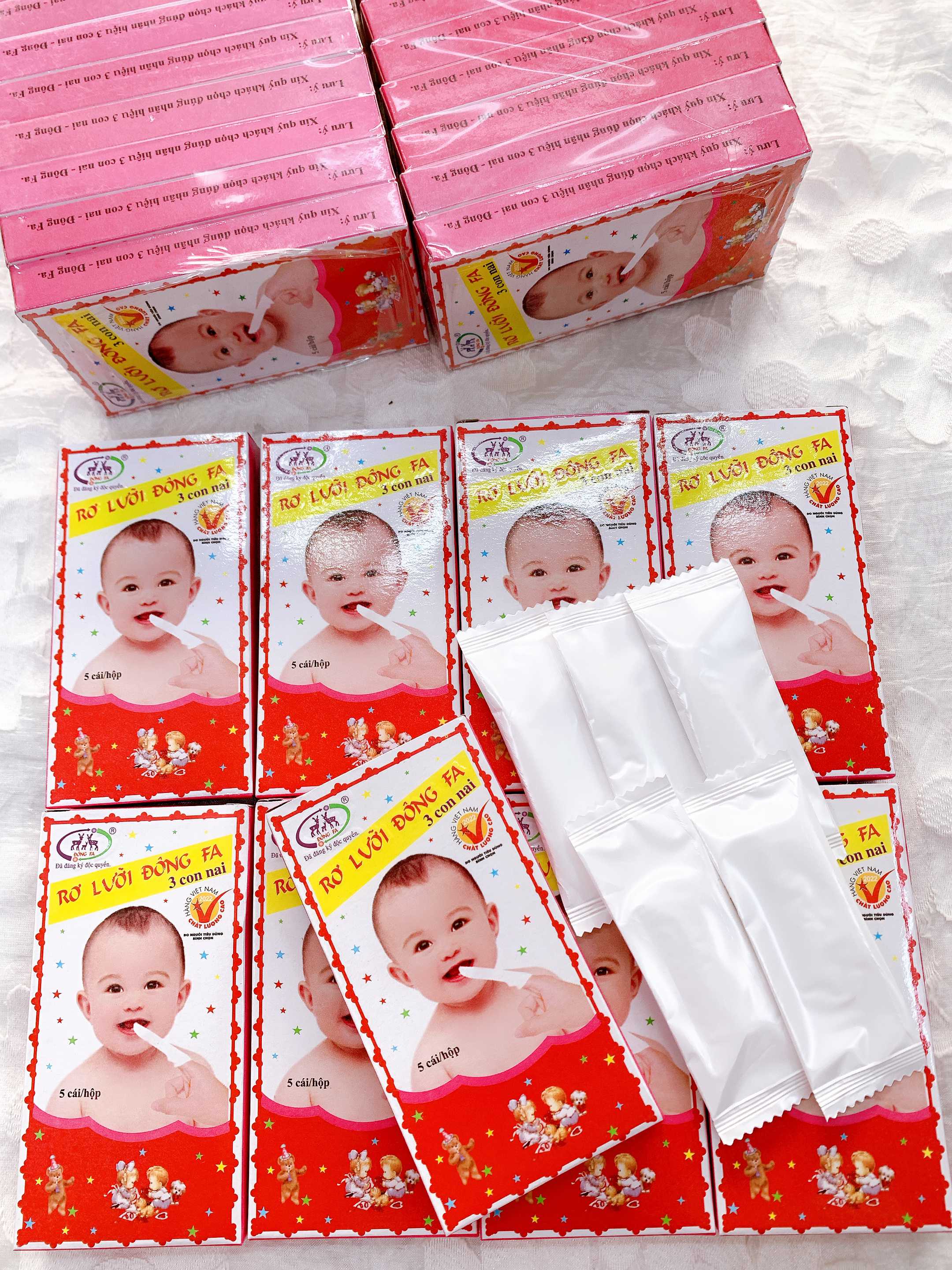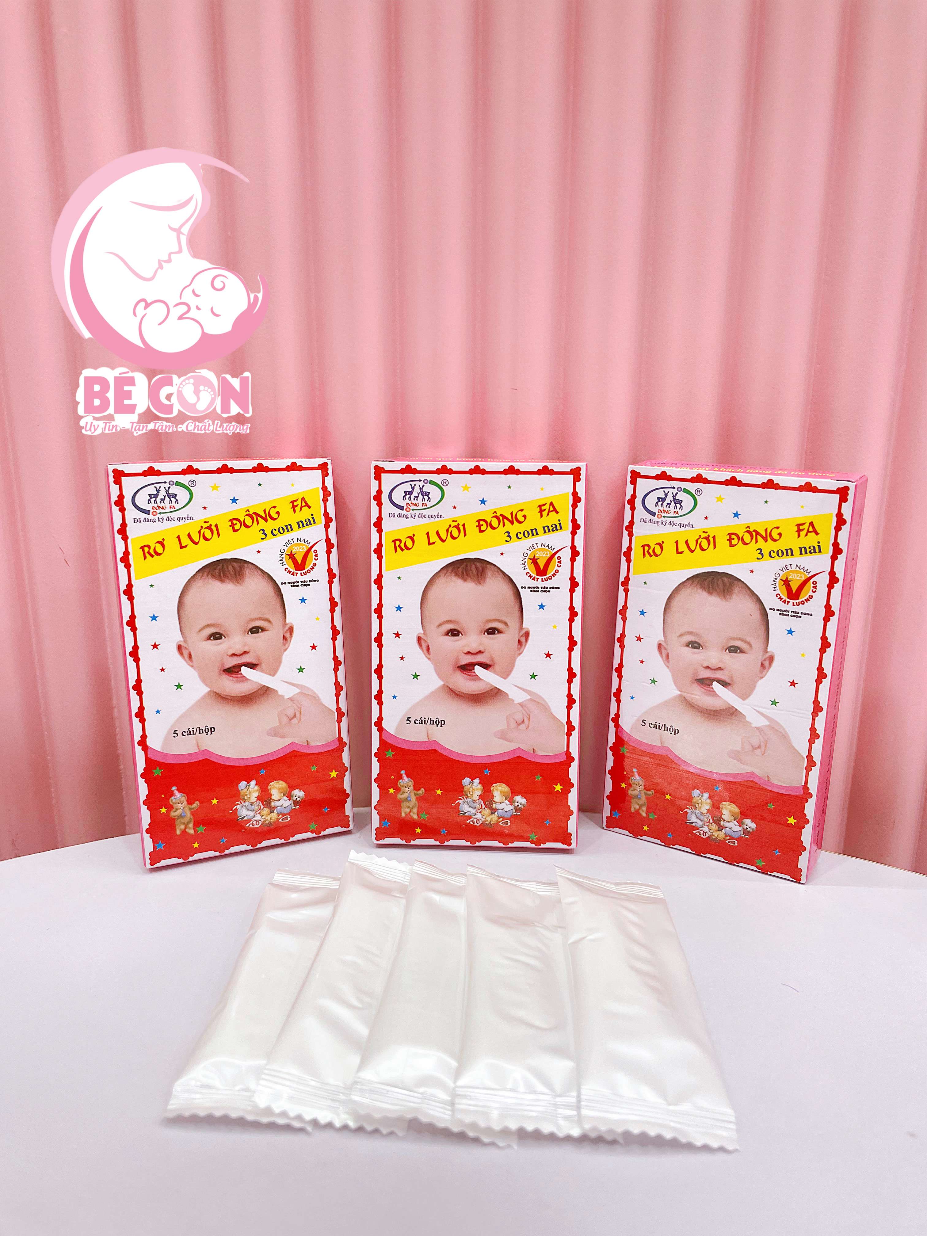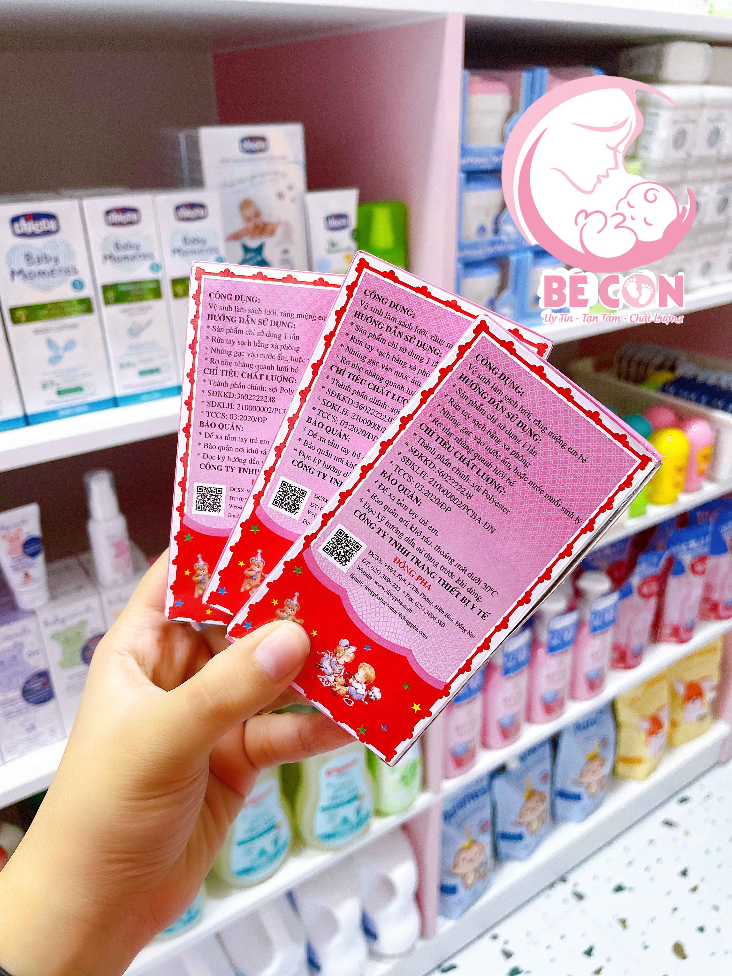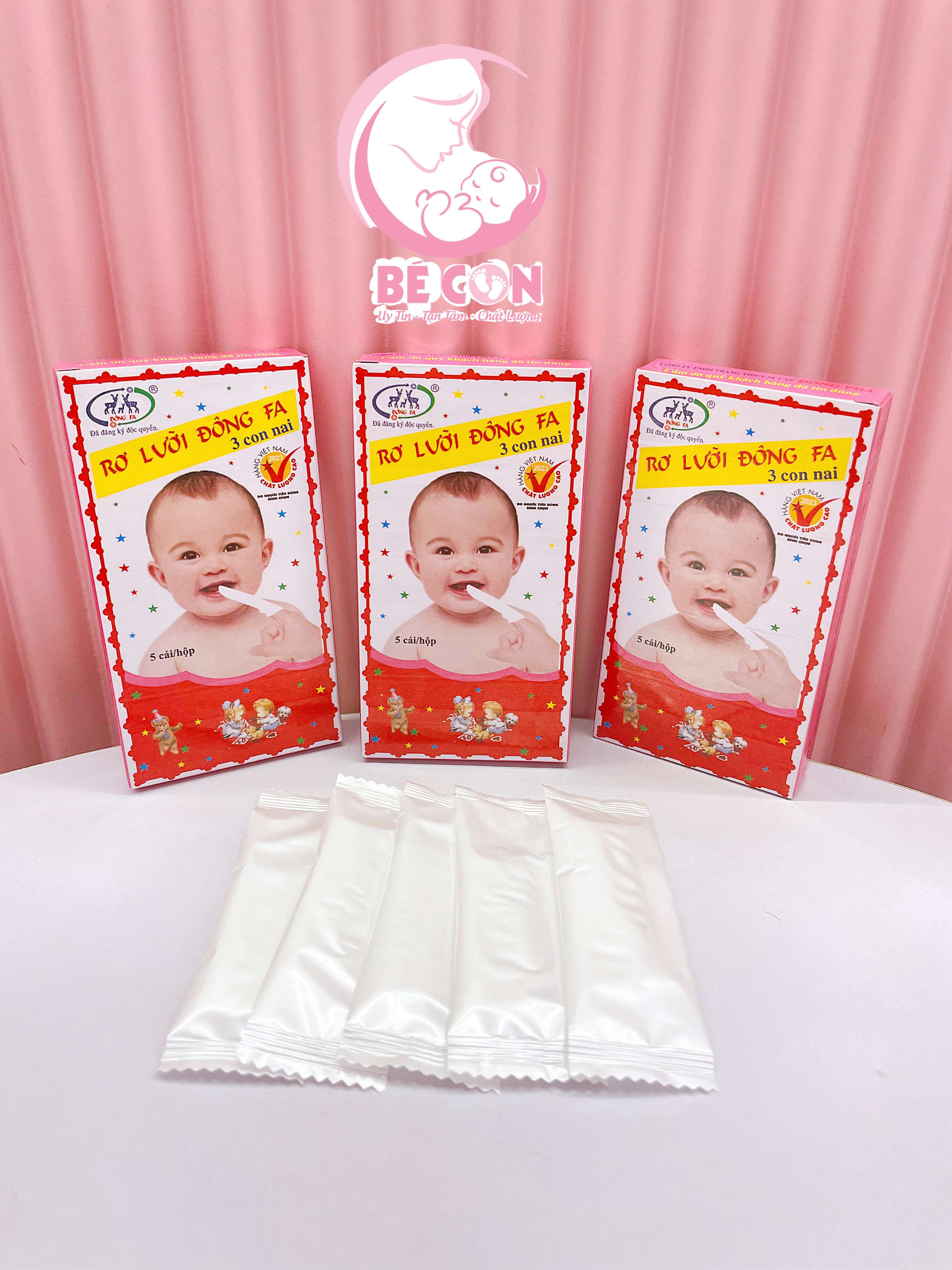 Tưa lưỡi tuy là bệnh đơn giản, dễ chữa nhưng nếu để lâu sẽ làm cho loài nấm men hay xuất hiện trong khoang miệng khi bé vệ sinh răng miệng và lưỡi không tốt ăn rộng ra khắp lưỡi, làm trẻ dần mất đi vị giác, không chỉ khiến trẻ biếng ăn mà còn làm trẻ thiếu dinh dưỡng, thường xuyên quấy khóc, mất ngủ. Đặc biệt hơn nữa nếu nấm mọc càng dày sẽ ăn loang ra đường họng gây tắc đường thở, dẫn đến viêm phổi, thậm chí sẽ có thể lan xuống dạ dày gây tiêu chảy, rất nguy hiểm đối với bé. Để giúp bé không bị tưa lưỡi đồng thời vệ sinh nướu lợi cho con thường xuyên, các mẹ hãy sử dụng Rơ lưỡi Đông Fa 3 con nai - sản phẩm được chứng nhận an toàn do bộ y tế cấp. Rơ lưỡi Đông Fa 3 con nai cho bé được thiết kế dưới dạng gạc, dễ sử dụng, mỗi hộp gồm 5 miếng, mẹ hãy sử dụng để vệ sinh miệng lưỡi cho bé mỗi ngày nhé.