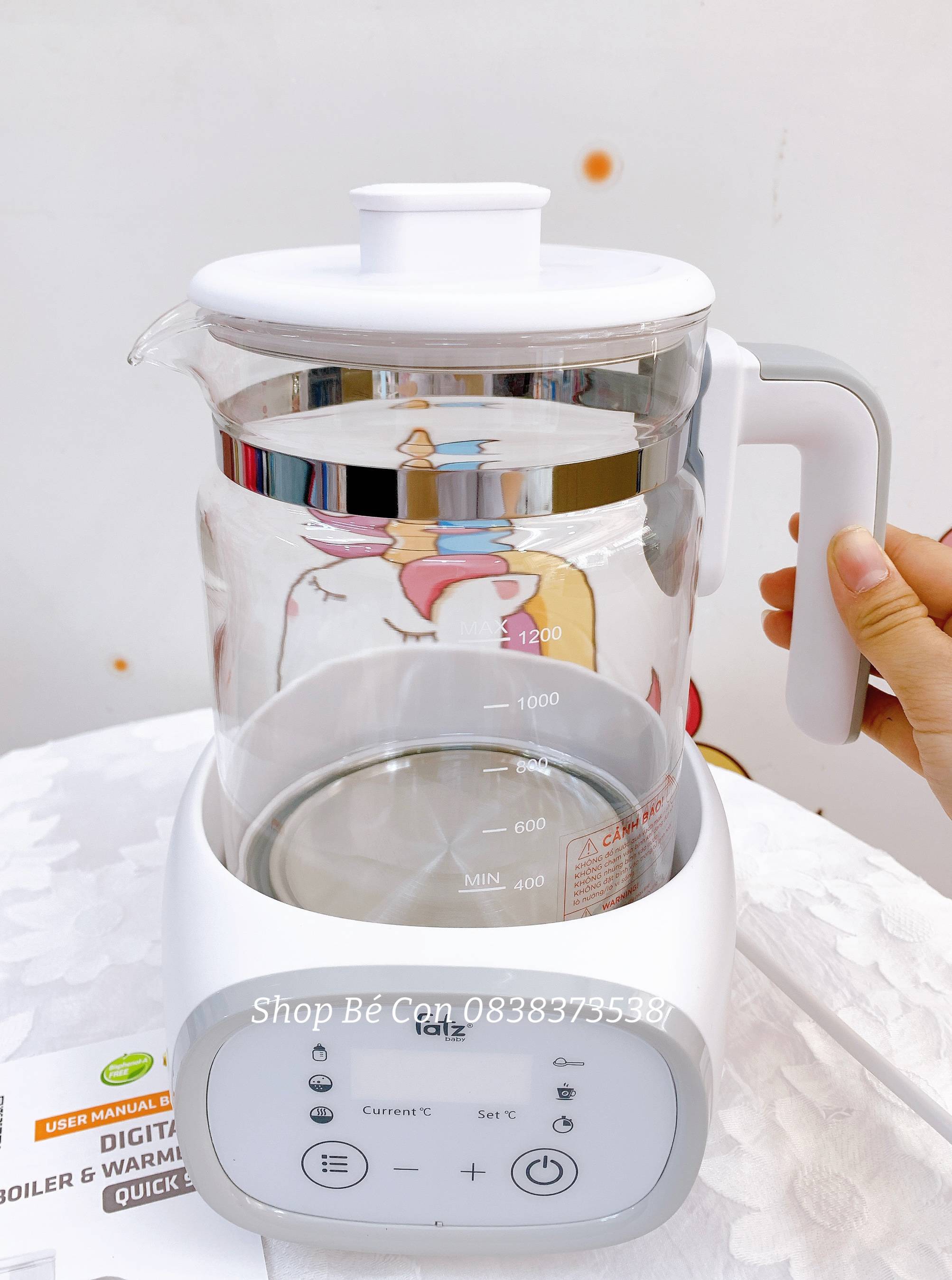 - Thiết kế hiện đại, tiện lợi: Thân bình bằng thủy tinh cao cấp có thể chịu được nhiệt độ cao, trong suốt giúp mẹ có thể quan sát được mực nước bên trong dễ dàng. Ngoài ra, bình có thể chứa đến 1200ml nước, đây là lượng nước phù hợp mà cả gia đình có thể sử dụng vừa pha sữa, pha trà, ngũ cốc.