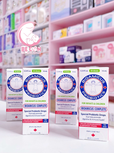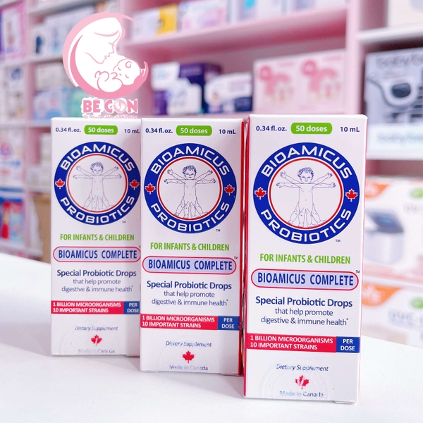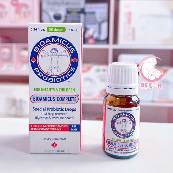 Men vi sinh 10 chủng BioAmicus Complete 10ml là men vi sinh 10 chủng đầu tiên và duy nhất hiện nay được nhập khẩu nguyên chai từ Canada. Với công thức đột phá chứa 10 chủng lợi khuẩn cần thiết có mặt ngay trong đường ruột của trẻ là Lactobacillus và Bifidobacteria, sản phẩm men vi sinh 10 chủng BioAmicus Complete là sự lựa chọn lý tưởng để giải quyết vấn đề tiêu hóa của trẻ. Mẹ chỉ cần nhỏ từ 5-10 giọt men 10 chủng mỗi ngày, không chỉ đơn thuần giúp trẻ cải thiện hiệu quả tình trạng biếng ăn, kém hấp thu và rối loạn tiêu hóa mà còn tăng cường sức đề kháng. Do đó bé giảm hẳn tình trạng ốm vặt và giảm tỷ lệ sử dụng kháng sinh.