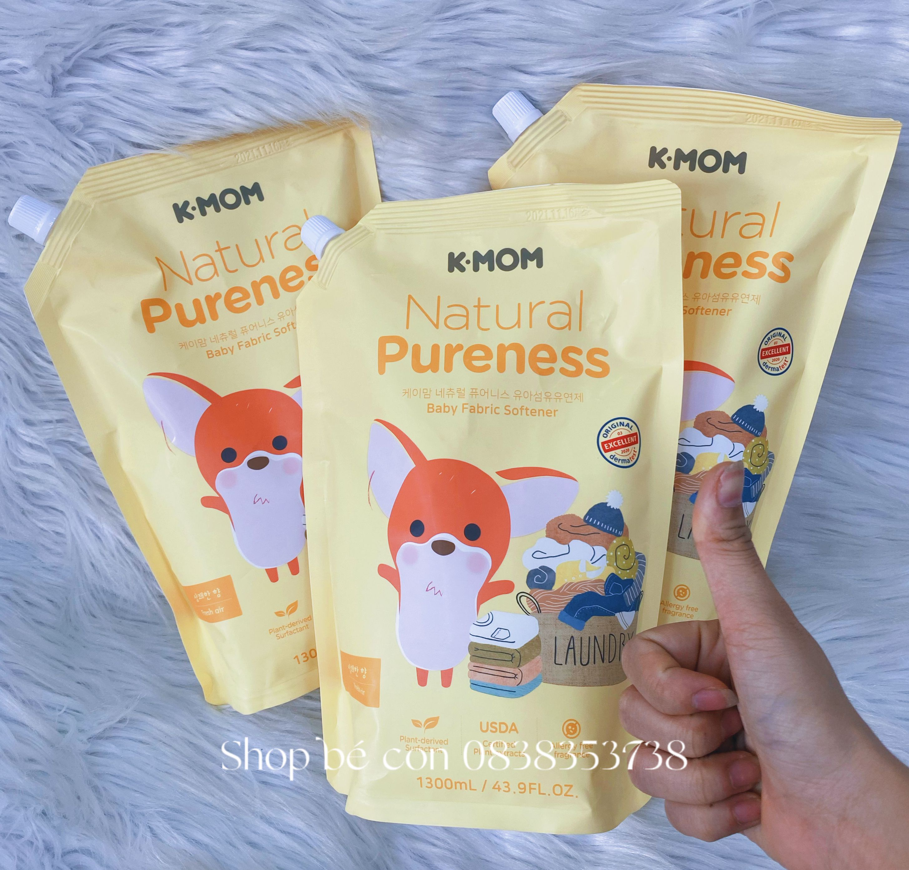 - Nước xả vải hữu cơ K-Mom Hàn Quốc màu cam KM13123 dạng túi 1300ml có chiết xuất từ nguyên liệu tự nhiên: thành phần chính là 100% dầu cọ, thân thiện với môi trường sinh thái, và dễ phân hủy sinh học. Không để lại bất kỳ chất cặn nào sau mỗi lần giặt.