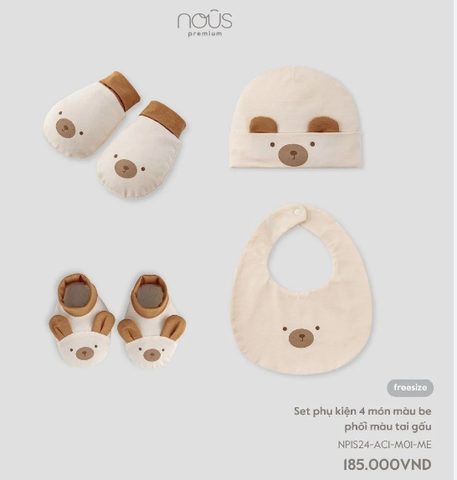 Set Phụ Kiện 4 Món Màu Be Phối Màu Tai Gấu