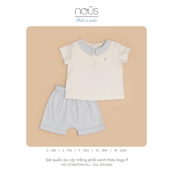 Set quần áo cộc trắng phôi xanh thêu logo P 3M