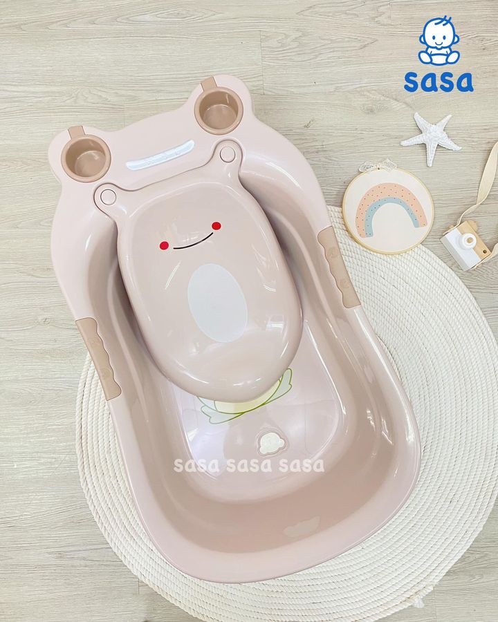 - Đi kèm với thau tắm là võng tắm cho bé, với chiếc võng này khi tắm bố mẹ có dễ dàng nâng đỡ bé hơn.