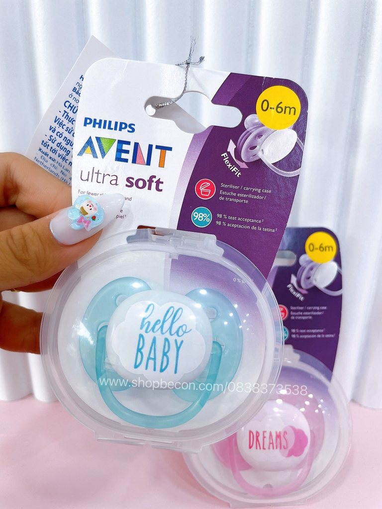 Chăm sóc làn da nhạy cảm của bé với ty ngậm siêu mềm ultra soft Philips Avent. Thiết kế miếng che siêu mềm, đàn hồi ôm sát má và vừa vặn với khuôn miệng bé, không để lại dấu và ít kích ứng da để bé ngậm thoải mái hơn.