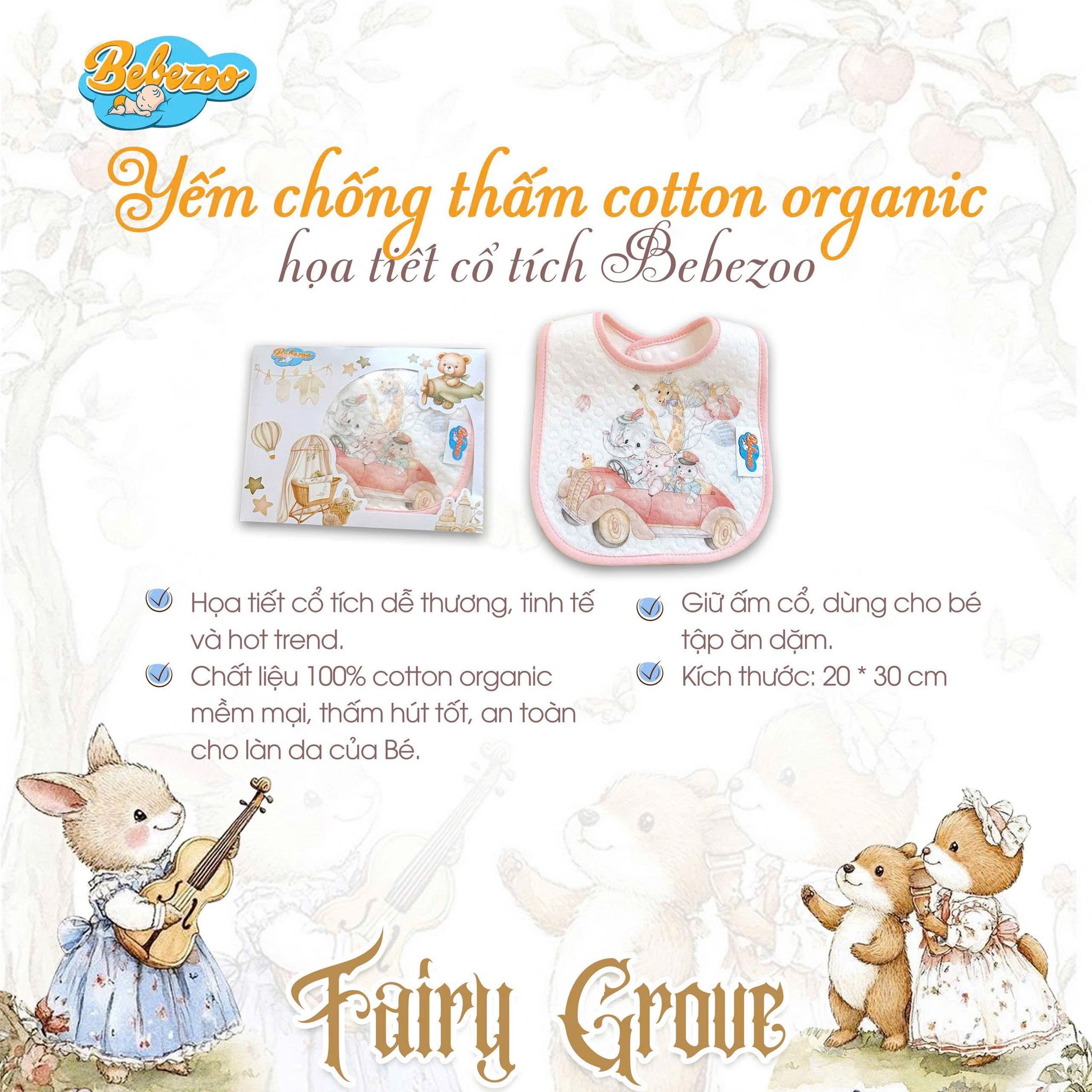 YẾM CHỐNG THẤM COTTON ORGANIC – HỌA TIẾT CỔ TÍCH BEBEZOO
